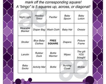 Baby Shower Teaching Resources | Teachers Pay Teachers 9 Printable Baby Shower Games-- Instant DownloadThis listing includes:1 - Baby Shower Bingo - Pre-filled Bingo Cards - There are 60 bingo cards that are filled in with lots of common baby shower gifts.+ Blank Bingo Cards - Alternately, you can print however many blank cards you'd like and have the guests fill in what gifts they think will be given before the game starts.You can use either of the options above for your baby shower bingo game - you get BOTH with this listing and can choose which o