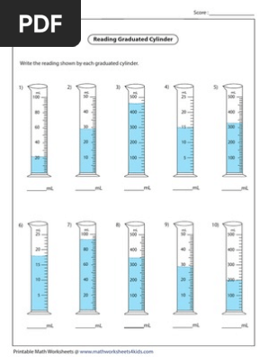 Browse Printable Measurement Worksheets | Education.com Download and print these measurement worksheets to provide real-world examples and practice opportunities for kids in a wide variety of elementary grades. For more hands-on activities for honing measurement skills, try these ideas: Browse Printable Measuring Volume Worksheets | Education.com Browse Printable Measuring Volume Worksheets. Award winning educational materials designed to help kids succeed. Start for free now! Reading a Graduated Cylinder - Worksheets Look closely at each graduated cylinder picture and write the volume of water each contains. This worksheet includes graduated cylinders that count by 10s. 2nd through 4th Grades